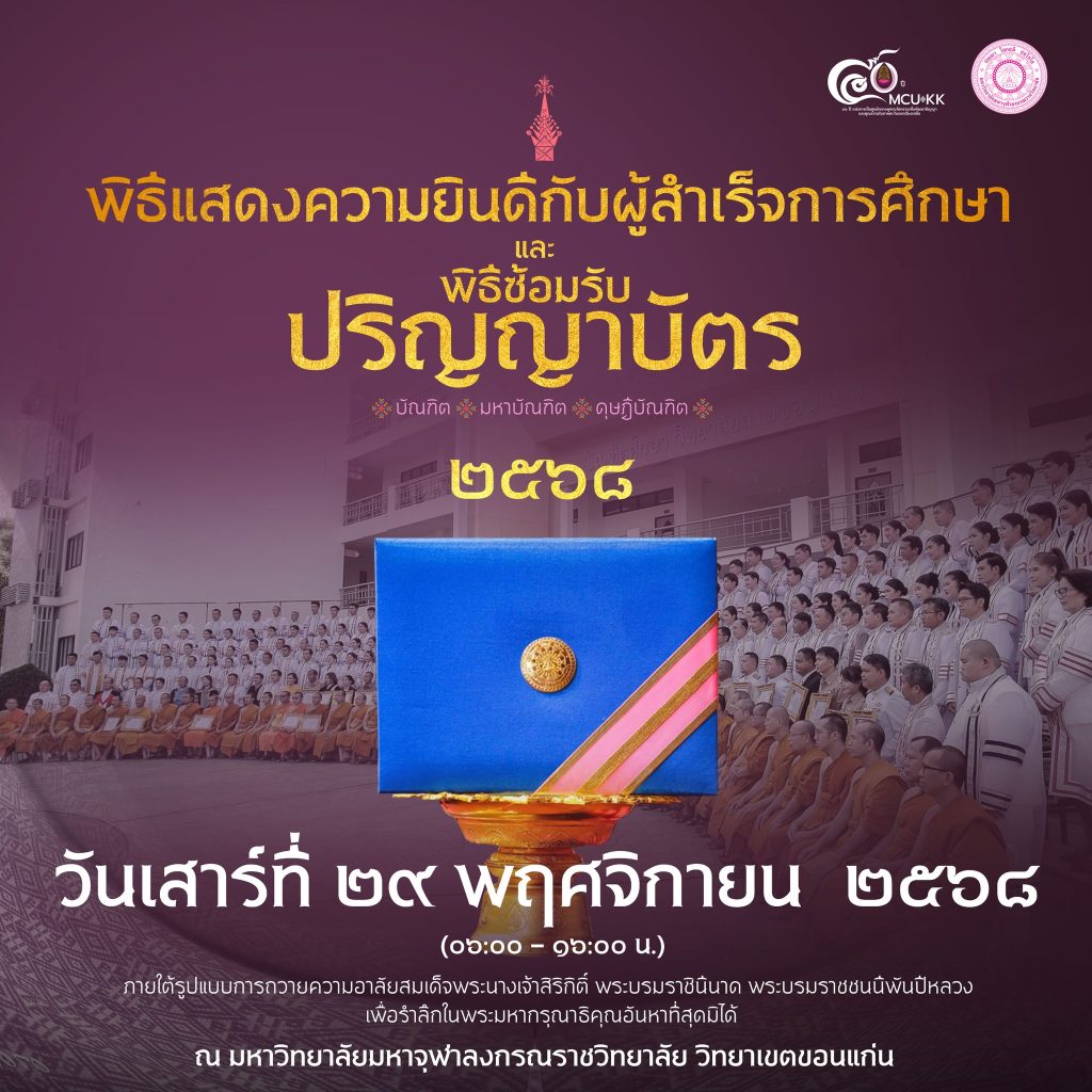 เมื่อวันที่ ๔ พฤศจิกายน ๒๕๖๘ มหาวิทยาลัยมหาจุฬาลงกรณราชวิทยาลัย วิทยาเขตขอนแก่น...