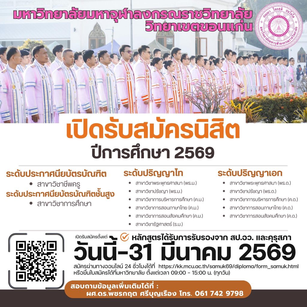 วันที่ 8 เดือนมีนาคม พ.ศ.2569 | เวลา 08:00 น. มหาวิทยาลัยมหาจุฬาลงกรณราชวิทยาลัย...