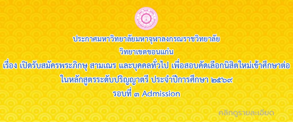 วันอังคารที่ 3 เดือนมีนาคม พ.ศ.2569 เวลา 10:00 น. มหาวิทยาลัยมหาจุฬาลงกรณราชวิทยาลัย...
