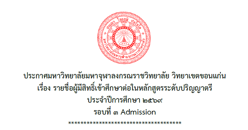 ประกาศรายชื่อผู้มีสิทธิ์สอบคัดเลือก รอบที่ 3 (Admission) ประจำปีการศึกษา...