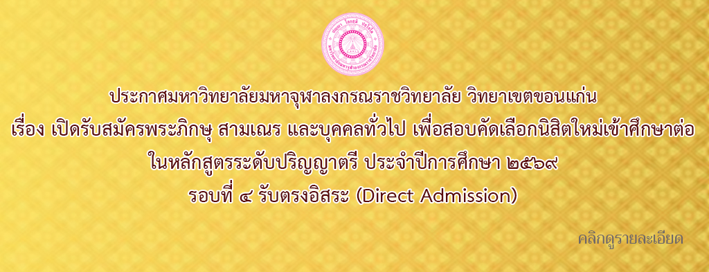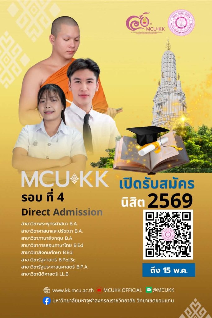 วันเสาร์ที่ 25 เดือนเมษายน พ.ศ. 2569 เวลา 16.00 น. ณ มหาวิทยาลัยมหาจุฬาลงกรณราชวิทยาลัย...