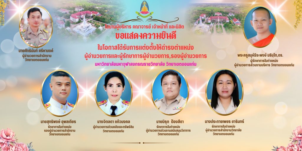 วันพุธที่ 8 เดือนตุลาคม พ.ศ.2568 เวลา 09.30 น. คณะผู้บริหารตำแหน่งอำนวยการ ผู้รักษาการในตำแหน่งอำนวยการ ประเภท ตำแหน่งปฏิบัติการวิชาชีพและบริหารงานทั่วไปที่ได้รับตำแหน่งใหม่ เข้ารับฟังนโยบายการทำงานจากพระเดชพระคุณพระราชพัฒนวัชรบัณฑิต,รศ.ดร. รองเจ้าคณะจังหวัดขอนแก่น, เจ้าอาวาสวัดธาตุพระอารามหลวง, รองอธิการบดีวิทยาเขตขอนแก่น ณ ห้องประชุมพระครูปริยัติธรรมวงศ์ (สุพล ธมฺมวํโส) ชั้น […]