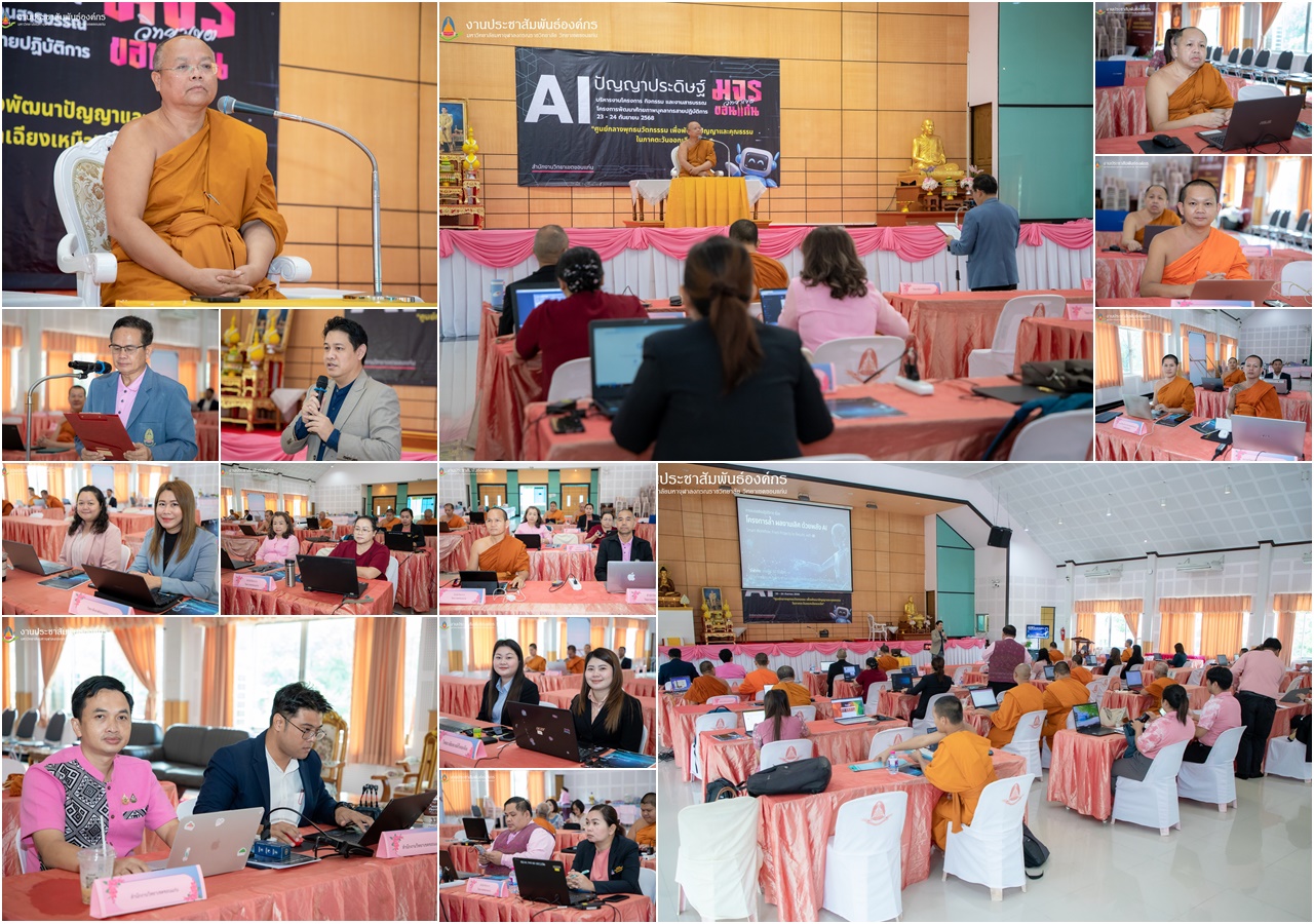 วันอังคารที่ 23 กันยายน พ.ศ. 2568 เวลา 09.00 น. พระเดชพระคุณพระราชพัฒนวัชรบัณฑิต,รศ.ดร. รองเจ้าคณะจังหวัดขอนแก่น, เจ้าอาวาสวัดธาตุพระอารามหลวง, รองอธิการบดีวิทยาเขตขอนแก่นเมตตาเป็นประธานเปิดโครงการพัฒนาศักยภาพบุคลากรสายปฏิบัติการ กิจกรรมการพัฒนาศักยภาพบุคลากรสายปฏิบัติการทักษะปฏิบัติงานด้วยปัญญาประดิษฐ์ AI