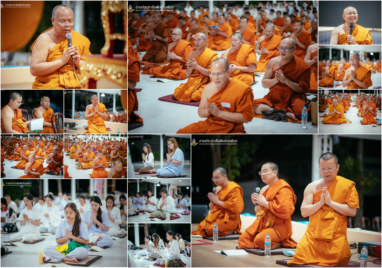 เมื่อค่ำวันที่ 21 ธันวาคม 2568 เวลา 18.00 น. ณ ศูนย์วิปัสสนาภาวนา มจร วิทยาเขตขอนแก่น (วัดป่าศรีเจริญธรรม) พระเดชพระคุณพระราชพัฒนวัชรบัณฑิต, รศ.ดร. รองอธิการบดีวิทยาเขตขอนแก่น เมตตาเป็นประธานนำนิสิตทำวัตรเย็นและเจริญจิตภาวนา เพื่อถวายเป็นพระราชกุศลแด่ “สมเด็จย่าหลวง” และเฉลิมพระเกียรติ “ในหลวง-ราชินี” พร้อมรับฟังโอวาทธรรมจาก พระครูสุธีคัมภีรญาณ, รศ.ดร. เพื่อเป็นแนวทางในการปฏิบัติวิปัสสนากรรมฐาน ประจำปีการศึกษา 2568 “การปฏิบัติวิปัสสนา ไม่ใช่เพียงการหลับตา แต่คือการลืมตาดูความจริงของกายและใจ เพื่อให้เห็นโลกตามความเป็นจริง” คำโอวาทธรรมส่วนหนึ่งจาก พระครูสุธีคัมภีรญาณ, รศ.ดร.