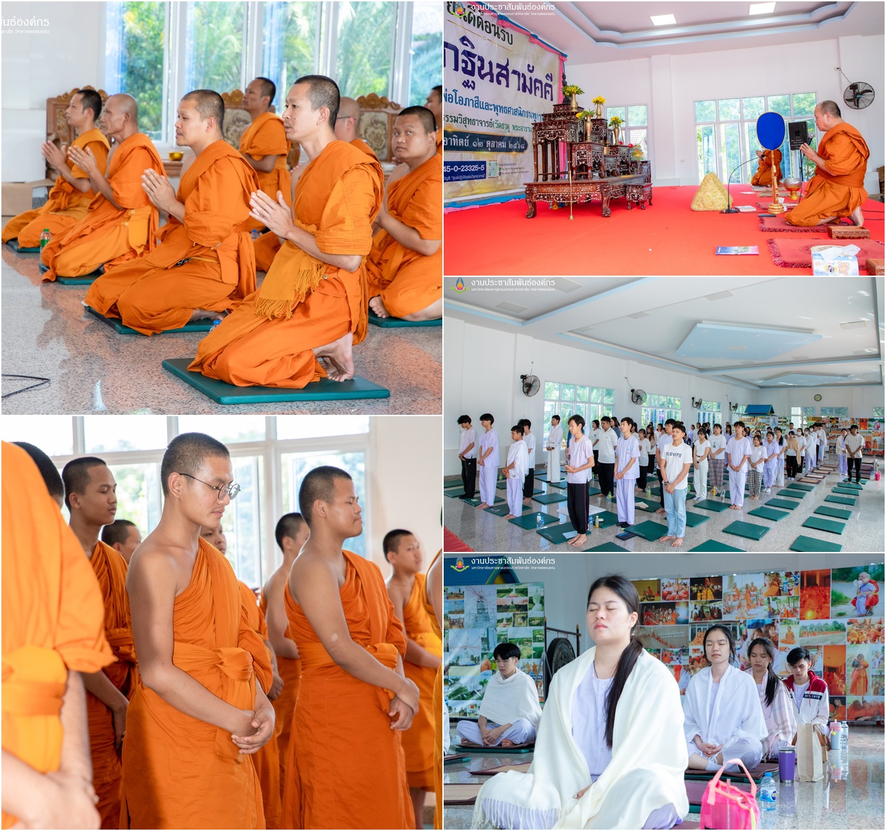 บรรยากาศภายในศูนย์ปฏิบัติธรรมวิสุทธาจารย์ เต็มไปด้วยความสงบและสำรวม คณะพระวิปัสสนาจารย์ได้เมตตาให้โอวาทธรรมและแนะนำเทคนิคการเดินจงกรม-นั่งสมาธิ เพื่อขัดเกลาจิตใจและสร้างสันติสุขภายใน ตามแนวทางของทางมหาวิทยาลัยที่มุ่งเน้น “การศึกษาคู่ปฏิบัติ”
