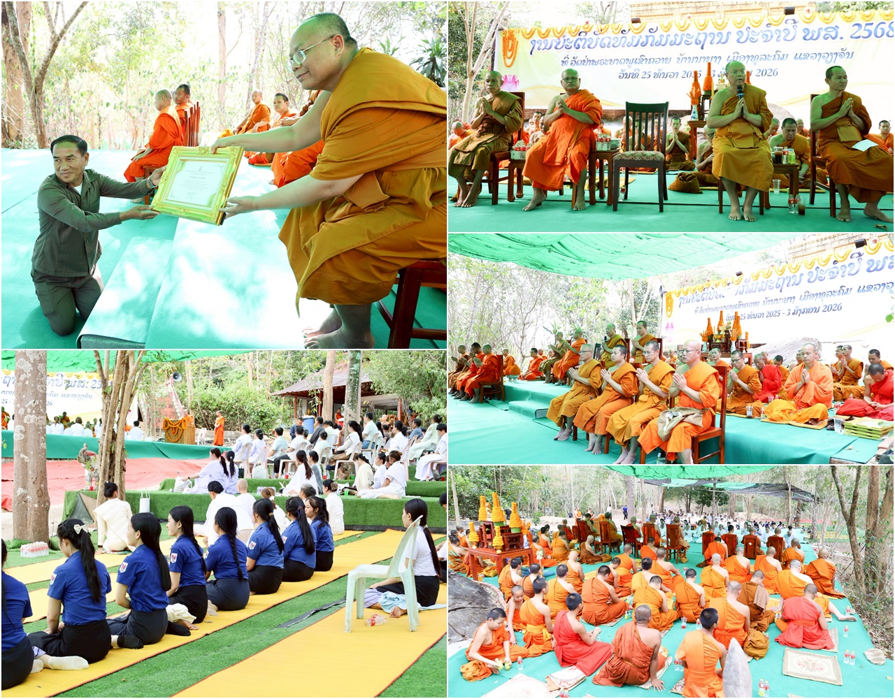 ๒๕ ธันวาคม ๒๕๖๘ พิธีเปิดโครงการปฏิบัติธรรมประจำปี และสรงน้ำรอยพระพุทธบาท ระหว่างมจร.ขอนแก่น และคณะสงฆ์ในแขวงเวียงจันทน์ ณ วัดพระบาทนายาง เมืองทุละคม ภูเขาควาย แขวงเวียงจันทน์ สปป.ลาว