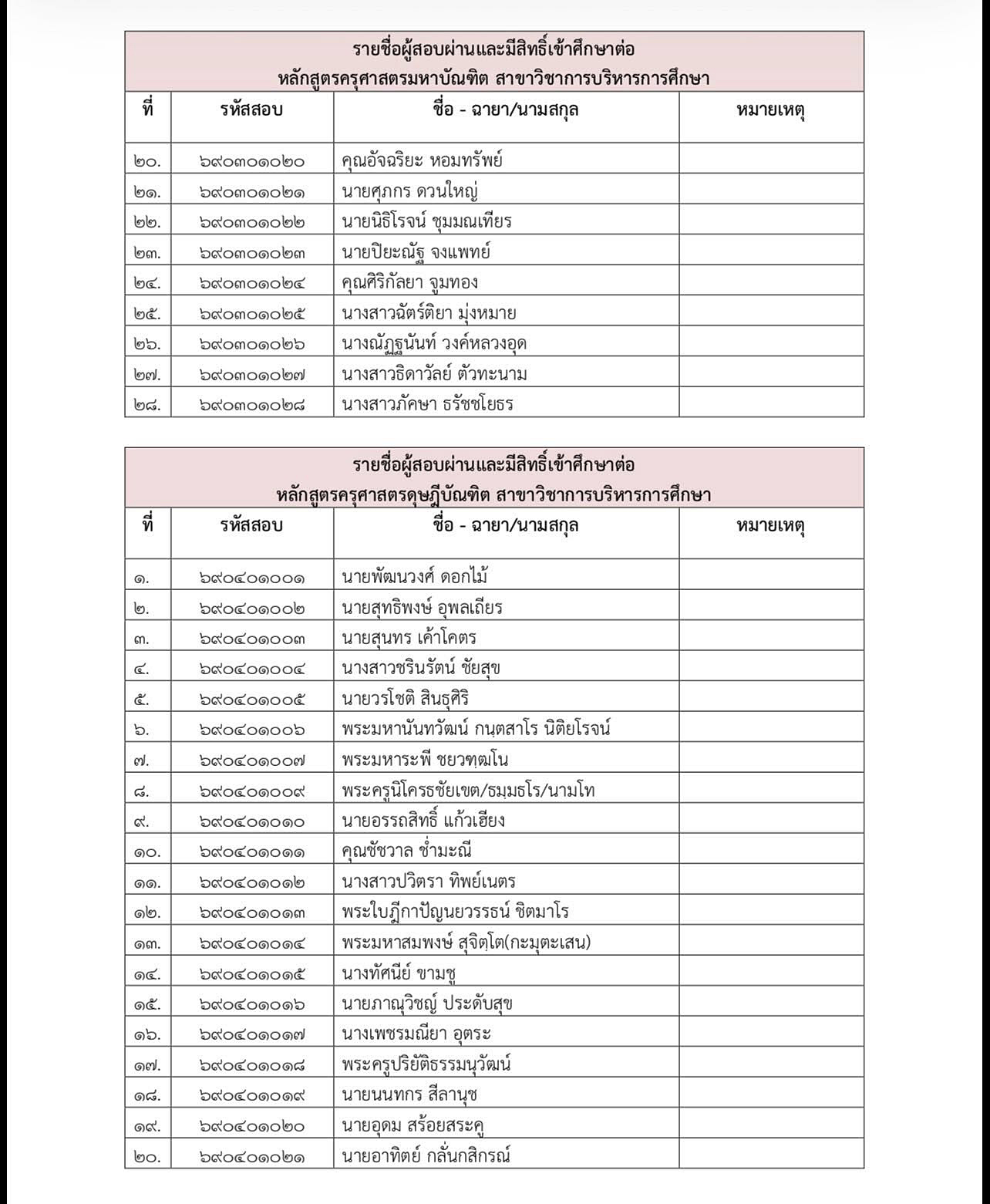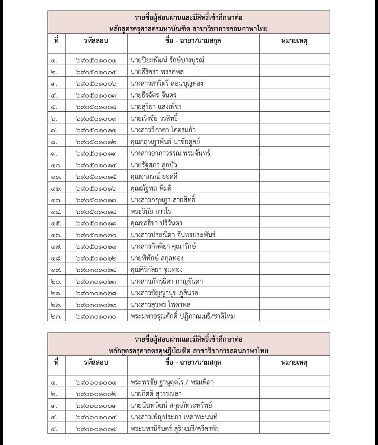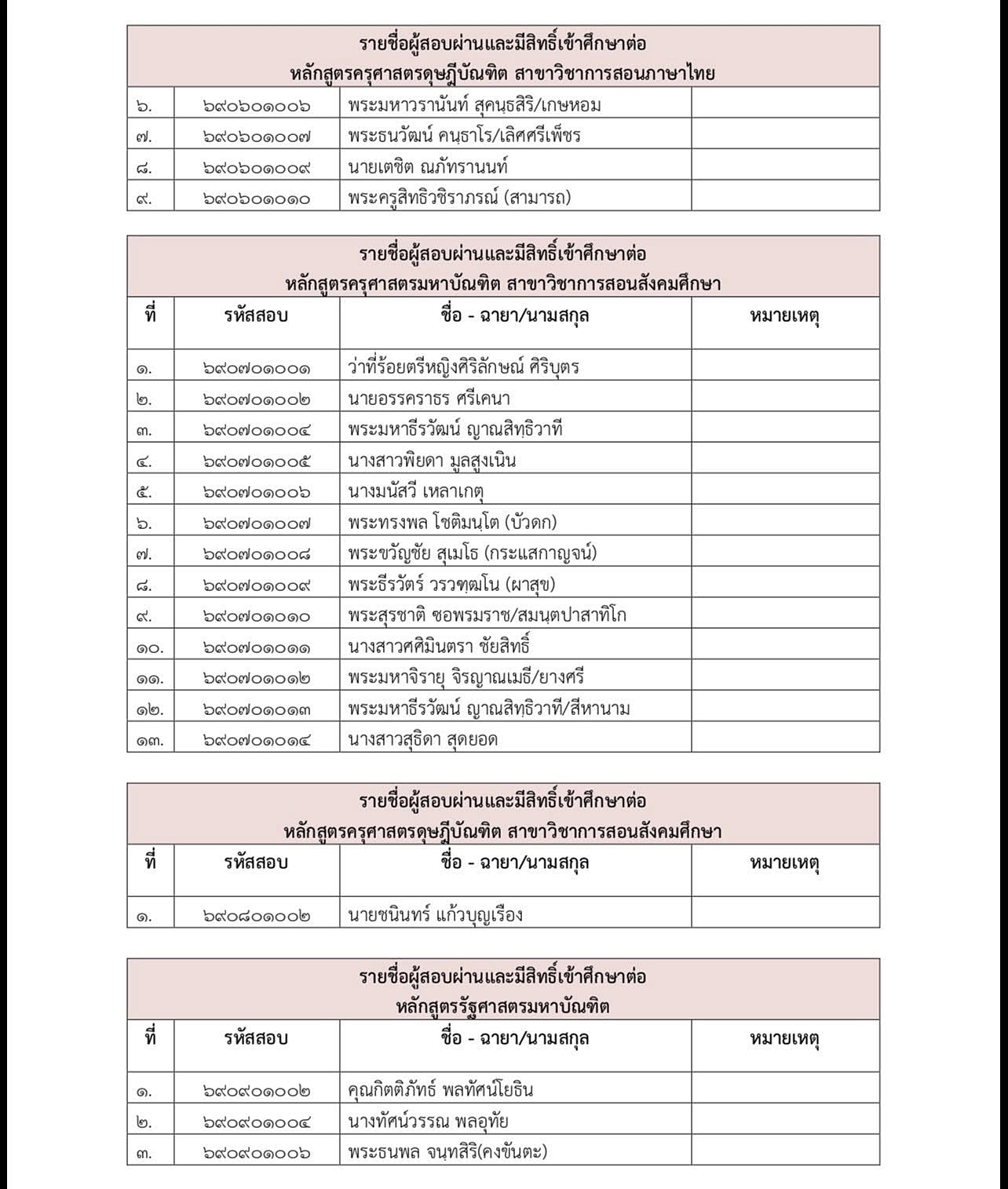 มหาวิทยาลัยมหาจุฬาลงกรณราชวิทยาลัย วิทยาเขตขอนแก่น ประกาศรายชื่อผู้สอบผ่านและมีสิทธิ์เข้าศึกษาต่อหลักสูตรระดับบัณฑิตศึกษา ประจำปีการศึกษา 2569 (รอบที่ 1)