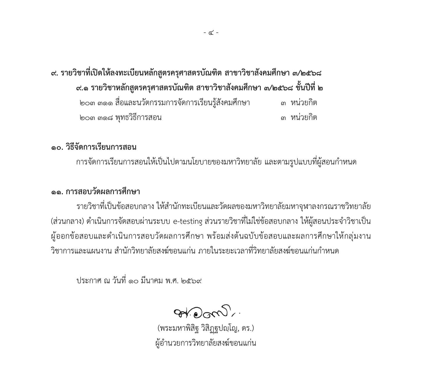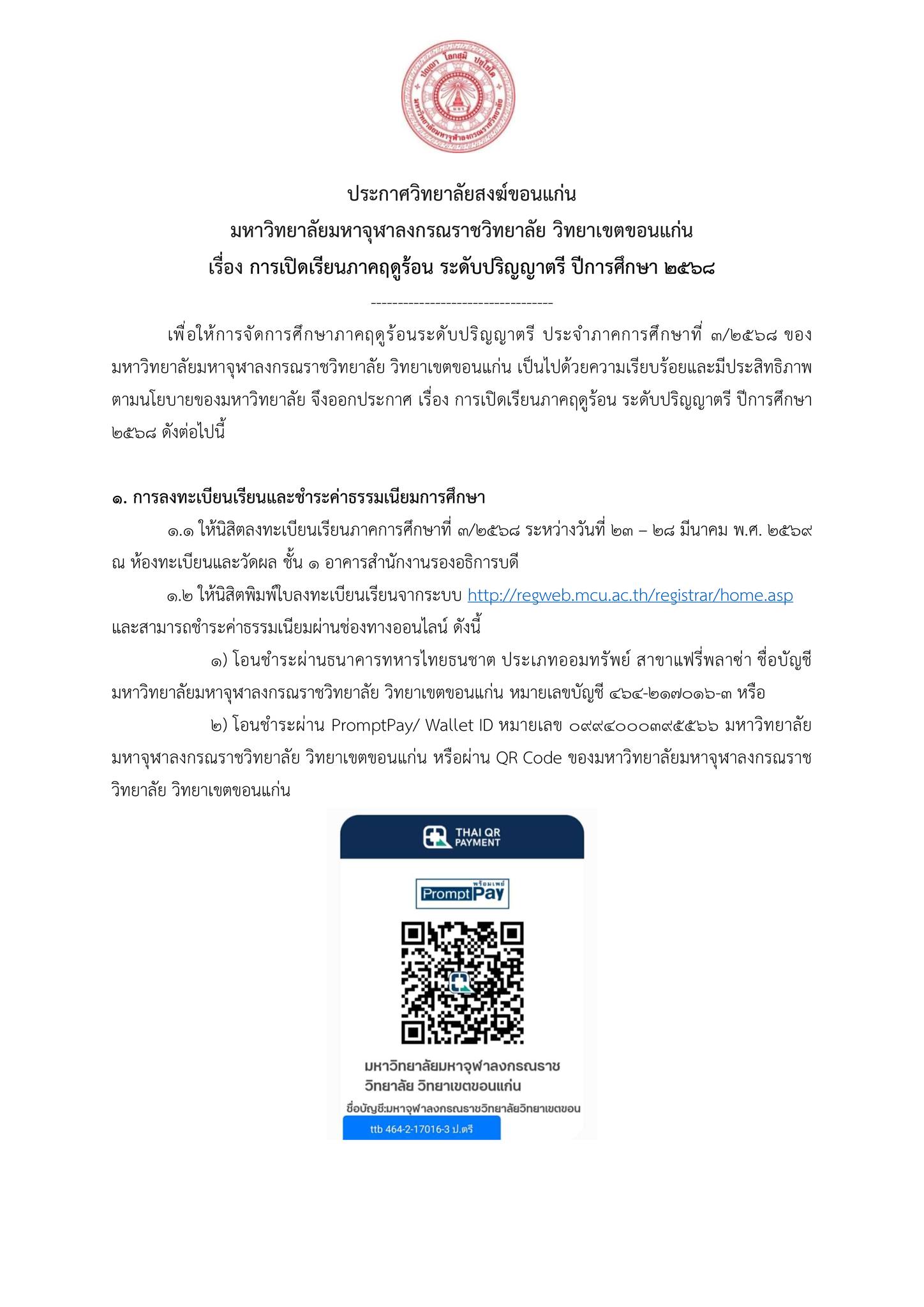 ประกาศวิทยาลัยสงฆ์ขอนแก่น เรื่อง การเปิดการเรียนการสอนภาคฤดูร้อน