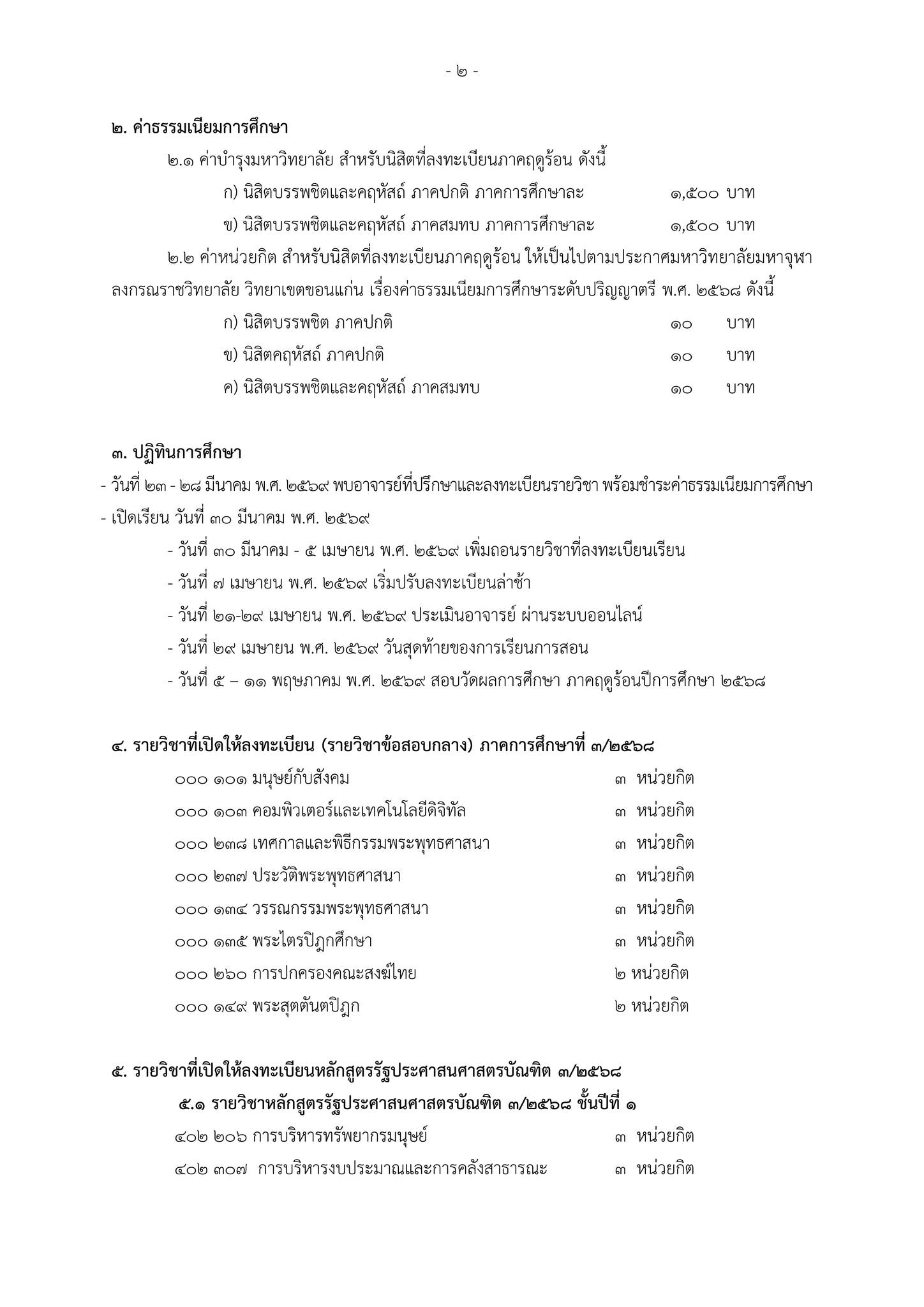 ขอแจ้งประกาศ การเปิดการเรียนการสอนภาคฤดูร้อน สำหรับนิสิตระดับปริญญาตรี ประจำปีการศึกษา ๒๕๖๘
