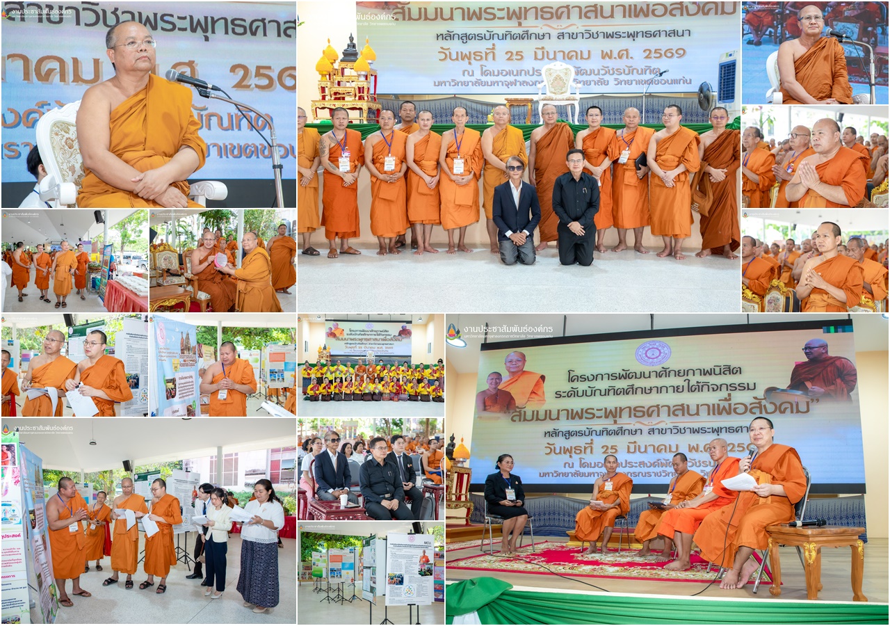 วันพุธที่ 25 เดือนมีนาคม พ.ศ. 2569 ณ โดมอเนกประสงค์พัฒนวัชรบัณฑิต มหาวิทยาลัยมหาจุฬาลงกรณราชวิทยาลัย วิทยาเขตขอนแก่น พระราชพัฒนวัชรบัณฑิต, รศ.ดร. รองอธิการบดีวิทยาเขตขอนแก่น เมตตาเป็นประธานในพิธีเปิดโครงการพัฒนาศักยภาพนิสิตระดับบัณฑิตศึกษา ภายใต้กิจกรรม “สัมมนาพระพุทธศาสนาเพื่อสังคม”