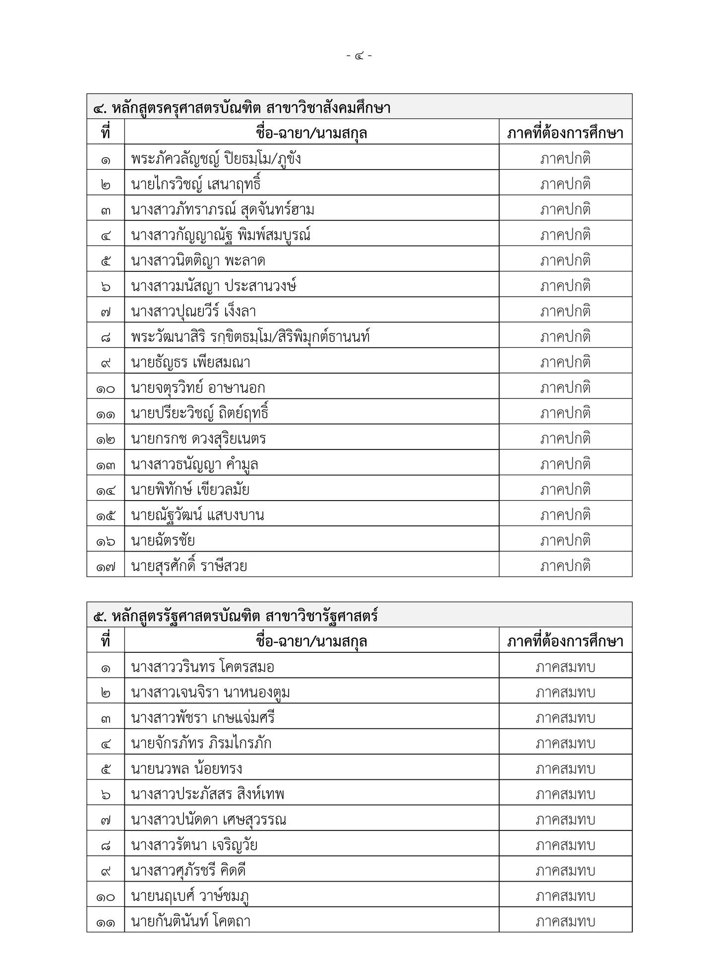 4️⃣ สาขาวิชาการสอนภาษาไทย และสาขาวิชาสังคมศึกษา
