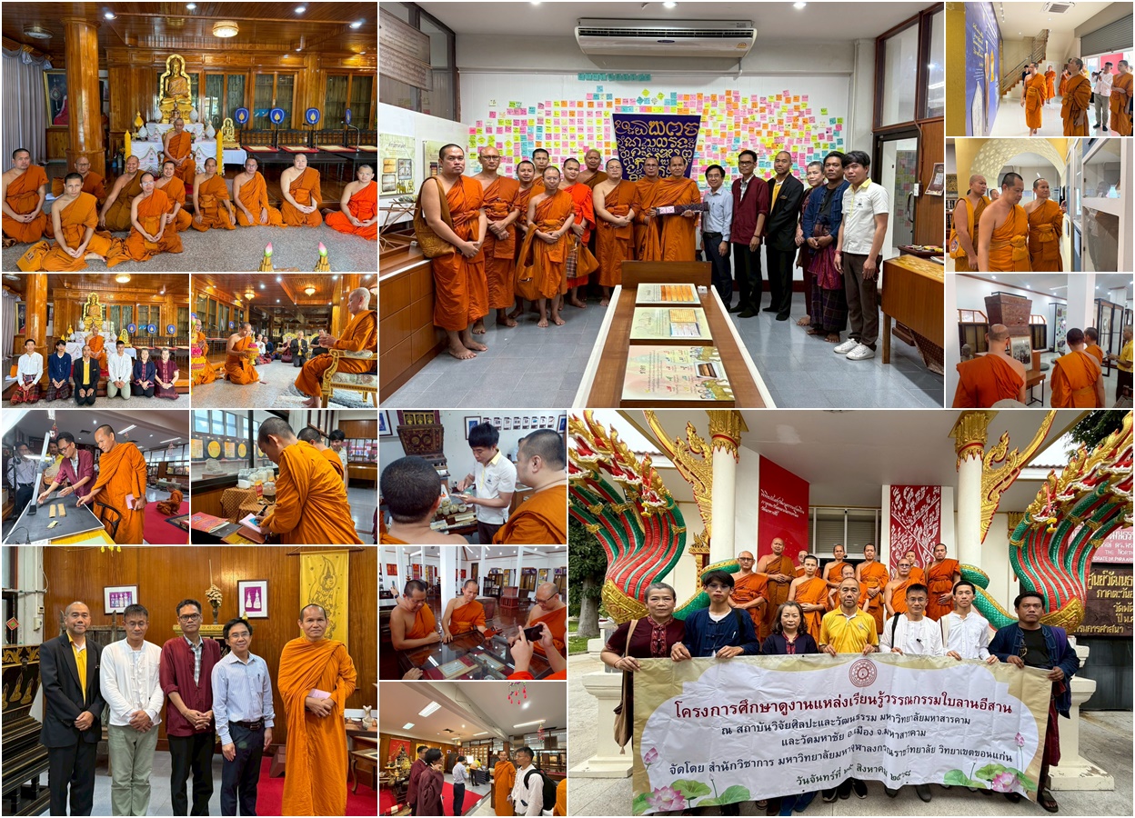 วันที่ 25 สิงหาคม 2568 สำนักวิชาการ มจร.วิทยาเขตขอนแก่น พาคณะนิสิตและผู้เรียนในหลักสูตรอบรม “การเขียนอ่านใบลานอีสาน” ไปศึกษาดูงานที่สถาบันวิจัยศิลปะและวัฒนธรรม มหาวิทยาลัยมหาสารคาม